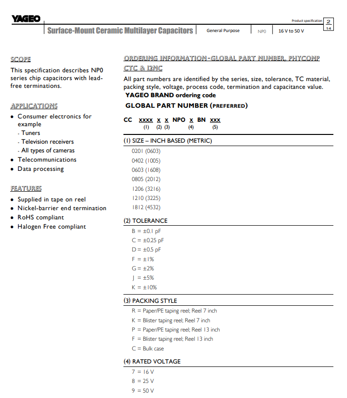 CC0603JRNPO9BN220 Ceramic Capacitor With 22 pF ±5% 50V C0G, NP0 0603